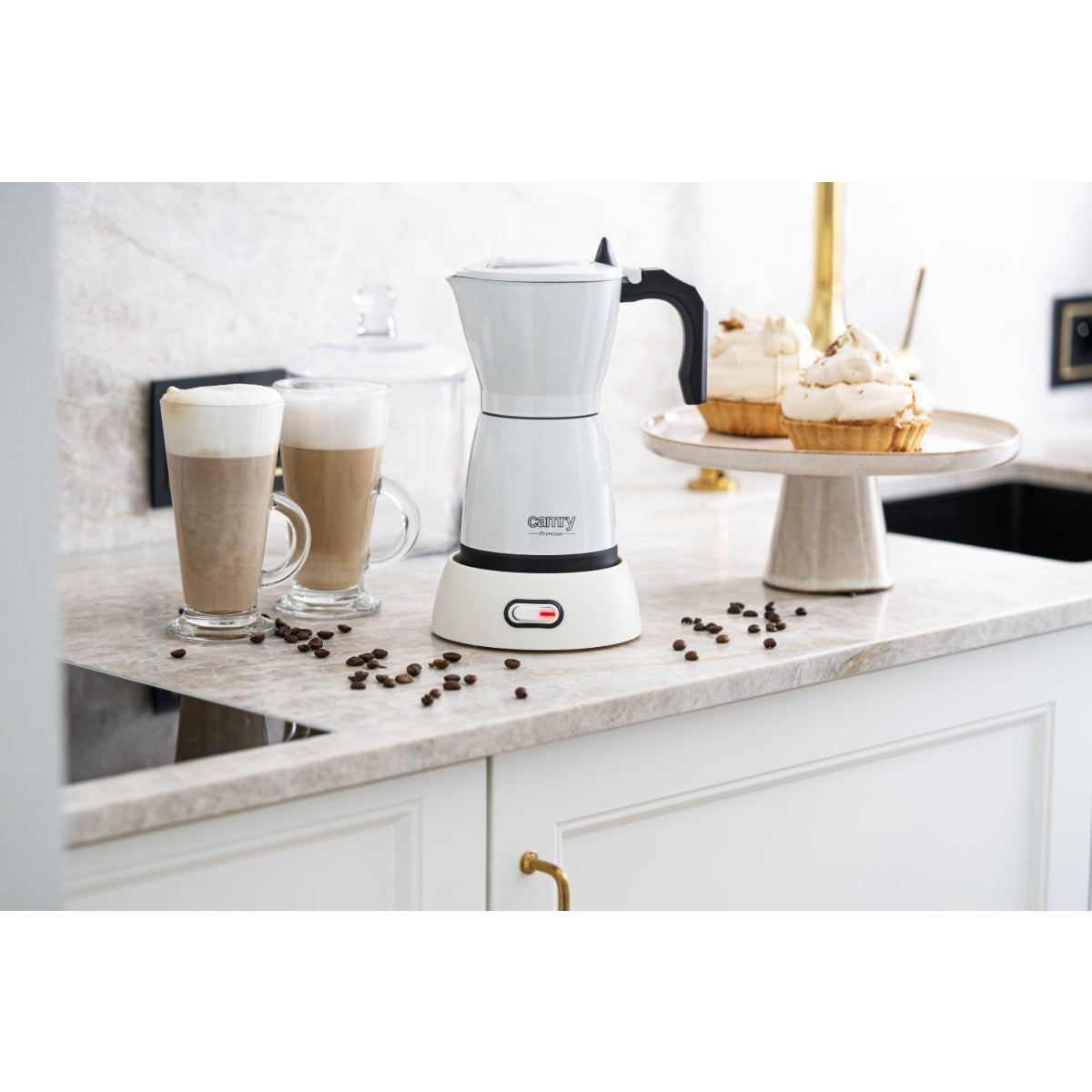 Enjoy the taste of professionally prepared coffee in the comfort of your home with the electric Moka coffee maker Camry CR 4415. In contrast to traditional coffee machines, this compact and affordable device allows you to prepare espresso quickly and efficiently, wherever you are. The high pressure generated during brewing ensures aromatic and full-bodied coffee, while the safety valve and automatic thermal shut-off ensure carefree use. The aluminum body ensures durability, and the cool handle adds to the comfort of use. Whether at home or on the go, this Moka Cafetiera is your perfect coffee companion.