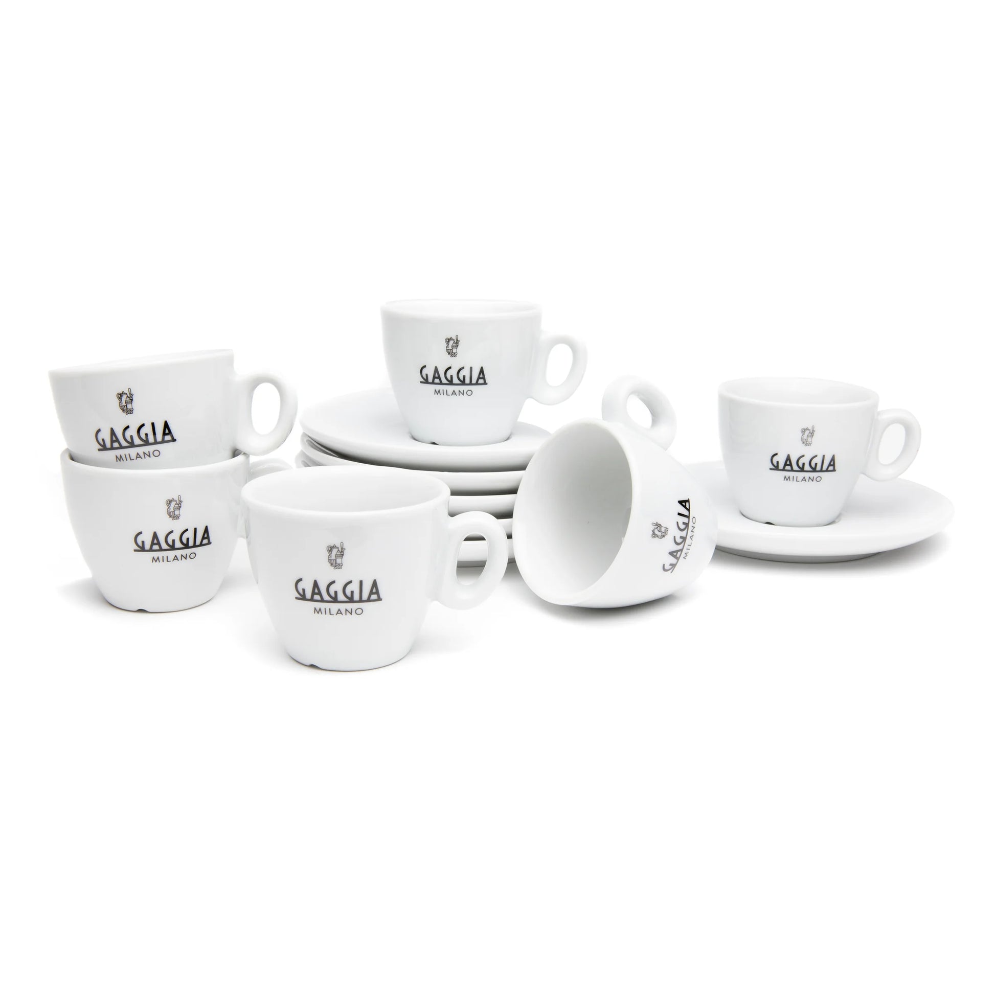 Elevate your morning routine with style and elegance. The Gaggia set of 6 espresso cups was designed with the perfect tasting experience in mind, combining classic Italian design and functionality. The cups are cream in color and feature the legendary Gaggia logo, bringing the touch of a professional café directly to your home.