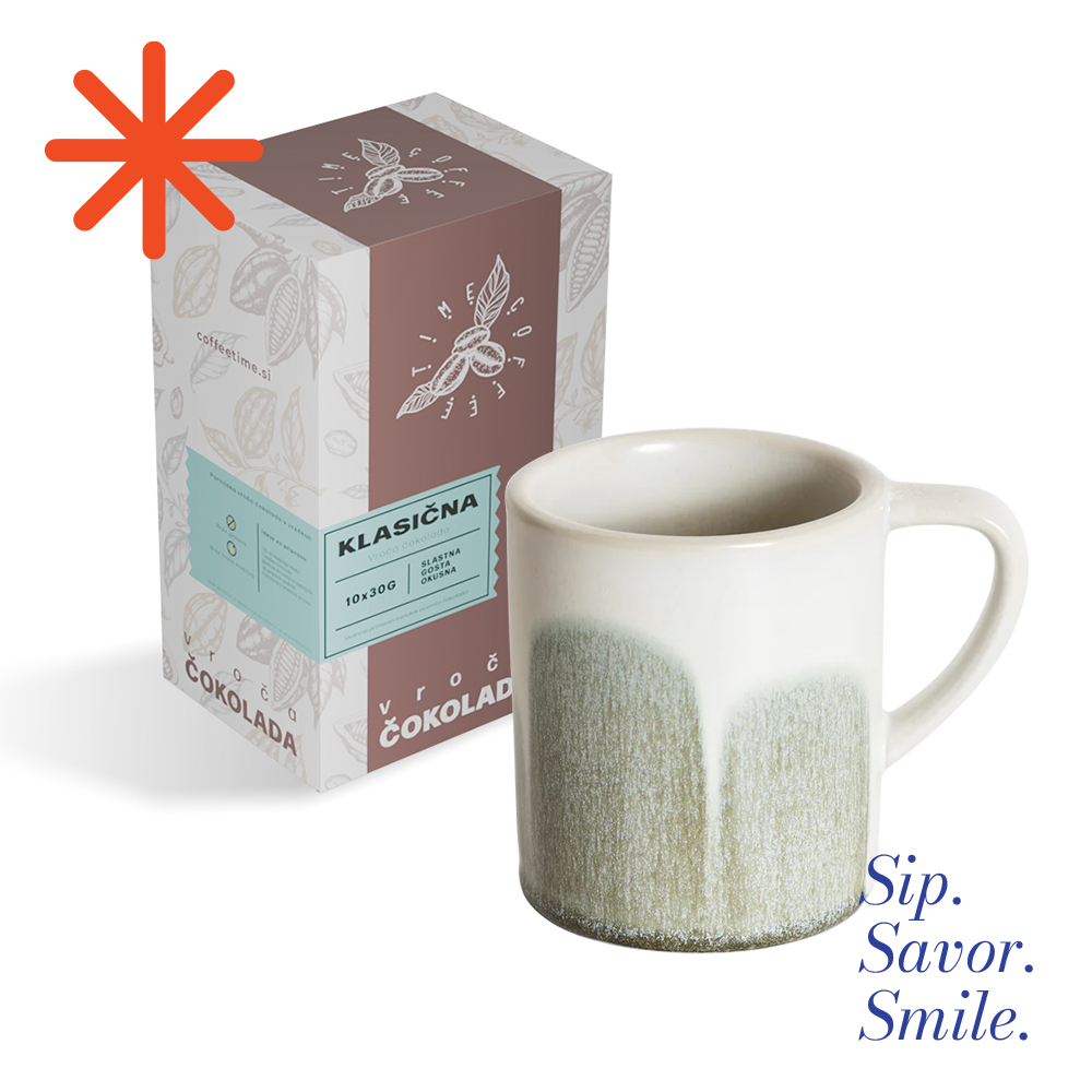 Sweet December is a gift package that brings homely warmth, pampering and a festive mood. It combines rich hot chocolate and a special hand-painted mug — ideal for winter evenings, cozy get-togethers or as a thoughtful gift that will make you happy.