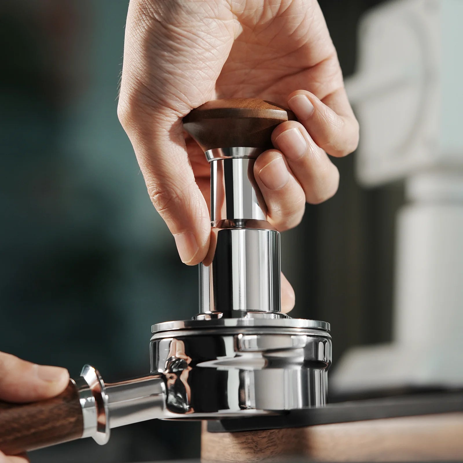 Unutarnji sustav od četiri opruge optimizira tampiranje kalibriranim tlakom i vertikalnim poravnanjem, što ga čini pouzdanijim nego kod konvencionalnih tampera za postizanje ujednačene gustoće sloja kave. Sa svakim pritiskom, alat se ponaša kao da izvodi idealnu krivulju tampiranja, pri čemu je sila konstantna i neovisna o snazi pojedinca. To znači da je svaki pritisak, bez obzira na tehniku ruke, približno ujednačen i stabilan. Ergonomski dizajnirana ručka udobna je za korištenje čak i pri pripremi nekoliko napitaka zaredom, smanjujući naprezanje ručnog zgloba, dok horizontalne vodilice pomažu u održavanju savršeno ravne baze za tampiranje.